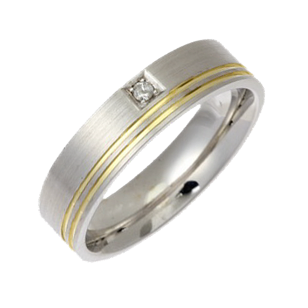 5mm 9ct White & Yellow Gold Flat Court 0.02ct Round Diamond Ring