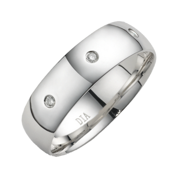 6mm 9ct White Gold Light Court 0.06ct Diamond Wedding Ring