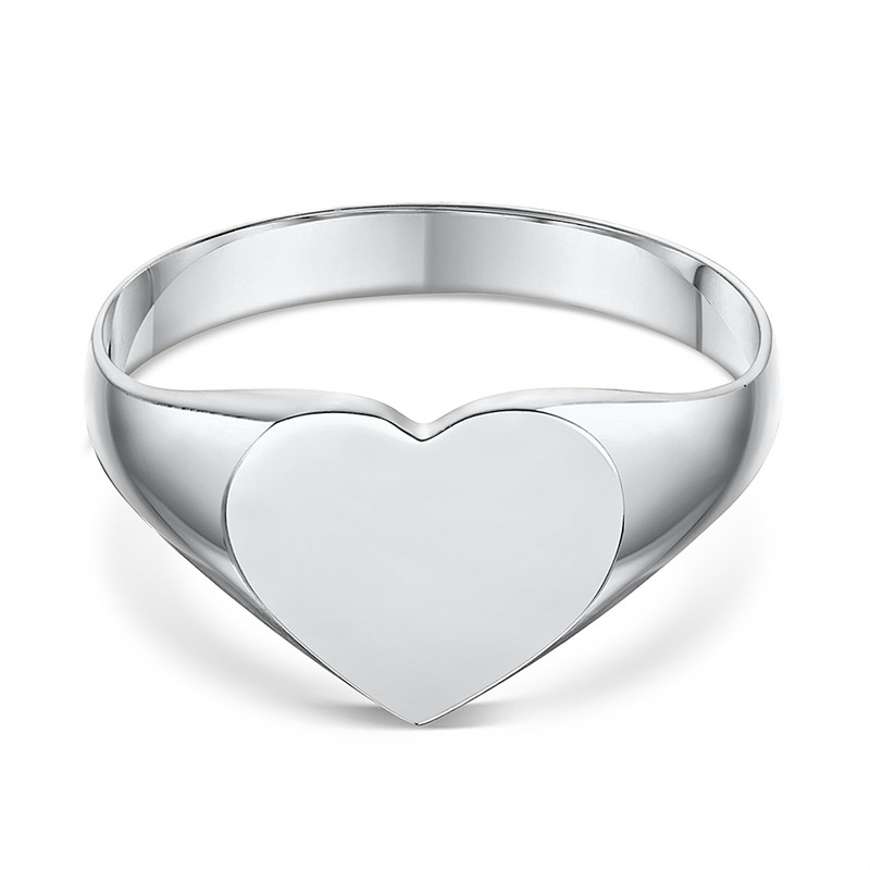 9ct White Gold Light Weight Heart Shape Ladies Signet Ring